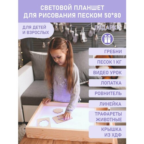 SANDLIGHT Планшет для рисования песком с цветной подсветкой, 40 × 60 см + гребень и трафарет