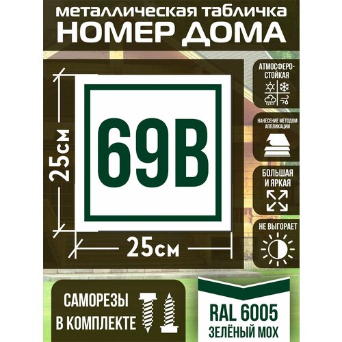 Адресная табличка на дом с номером 69в RAL 6005 зеленая