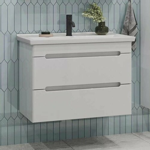 Комплект Тумба Адель 80 подвесной, 2/ящ, белый, мебельный умывальник Фостер 80/Fest 80 Sanstar