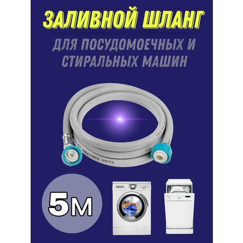 Шланг заливной 5 м для подключения стиральной и посудомоечной машины