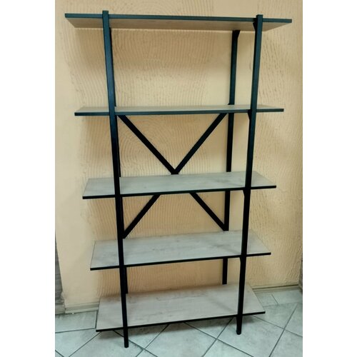Стеллаж металлический чёрный лофт с 5 полками из ЛДСП дуб бунрати 170х90х30 см.