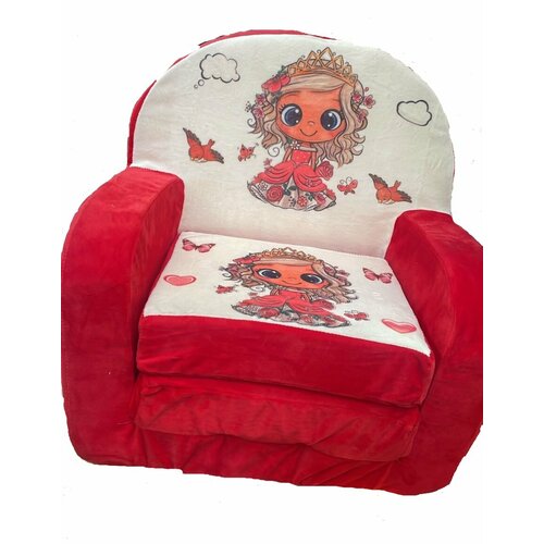 Бескаркасное мягкое детское кресло трансформер с принтом "Принцесса"