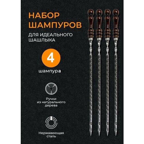 Набор шампуров 62 см 4 штуки / Шампуры из нержавеющей стали с деревянной ручкой из бука