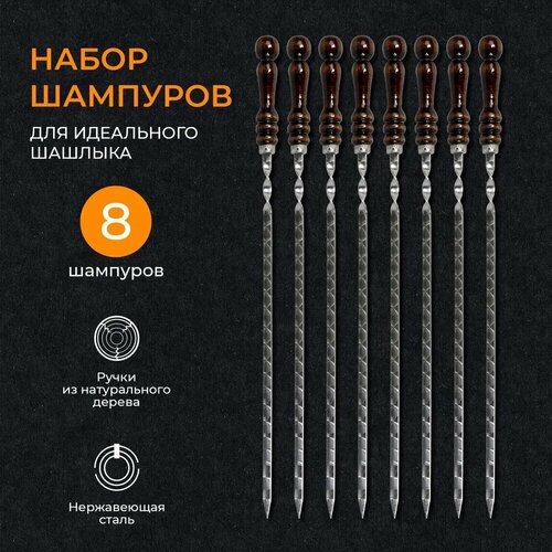 Набор шампуров 62 см 8 штук / Шампуры из нержавеющей стали с деревянной ручкой из бука