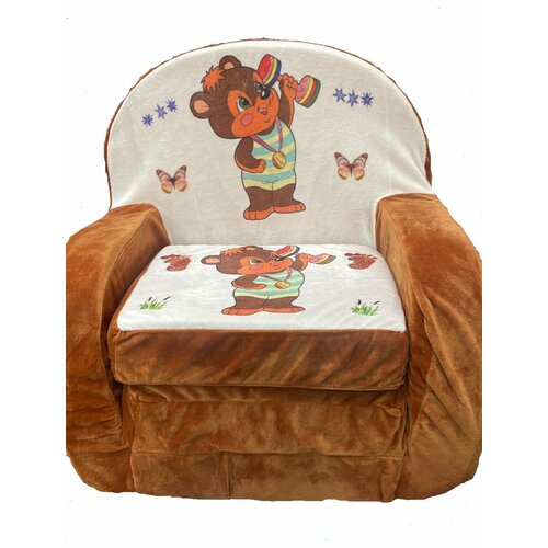 Бескаркасное мягкое детское кресло трансформер с принтом "Мишка атлет"
