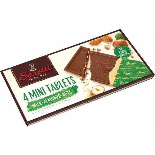 Шоколад Sarotti Молочный с дробленным миндалем и фундуком 100г 1шт