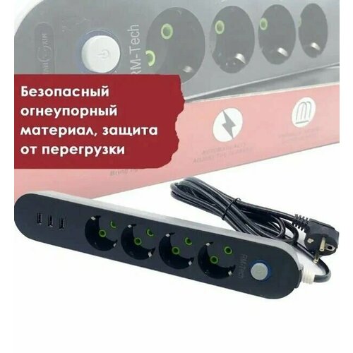 Удлинитель с 3 USB и 4 розетками