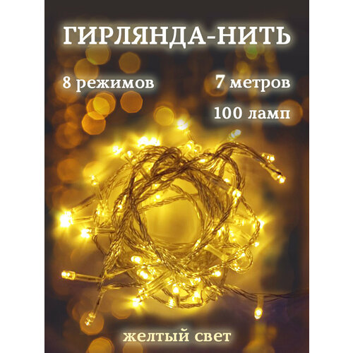Гирлянда новогодняя свет, 100 ламп, 7 метров, питание от сети