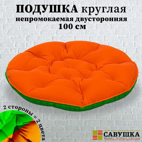 Подушка 100 см оранжевая/зеленая на кресло, для садовой мебели, для качелей, для подвесных кресел, для дома, для дачи, для животных