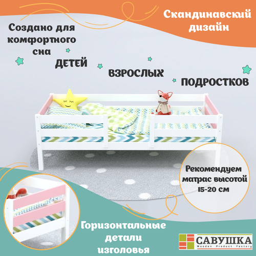 Кровать детская с бортиками для девочки Савушка-04 белая/розовая 90*200 основание в комплекте