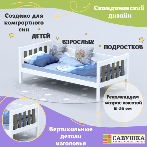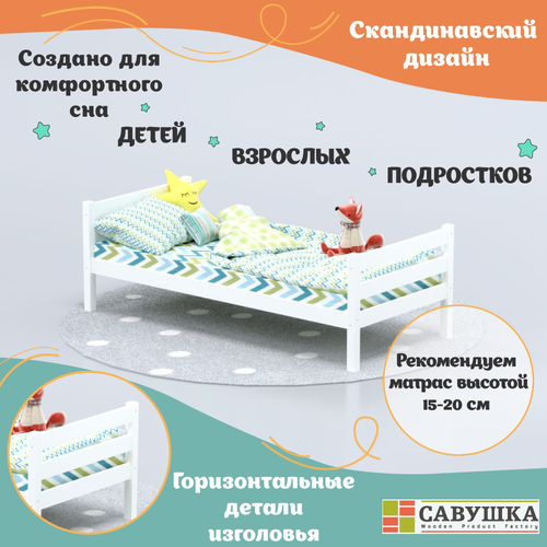 Кровать односпальная деревянная 90*200 Савушка-01 белая основание в комплекте для взрослых для детей для подростков