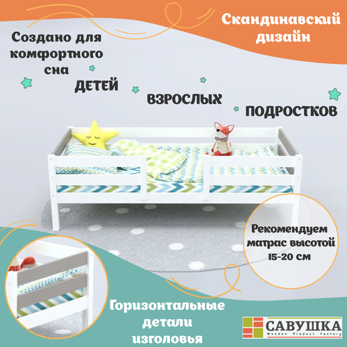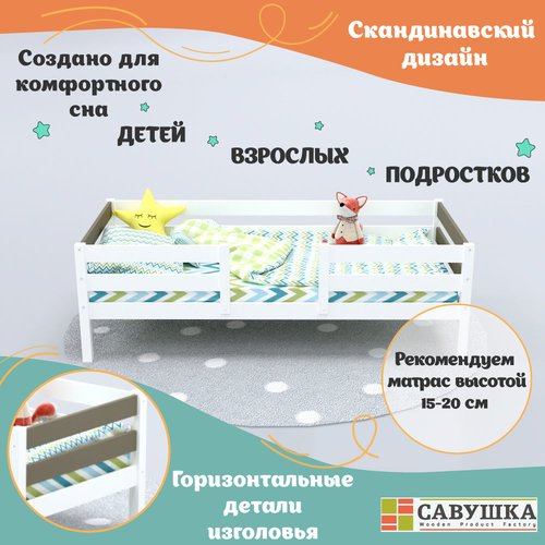 Кровать детская с бортиком деревянная Савушка-07 белая/серая 90*200 основание в комплекте