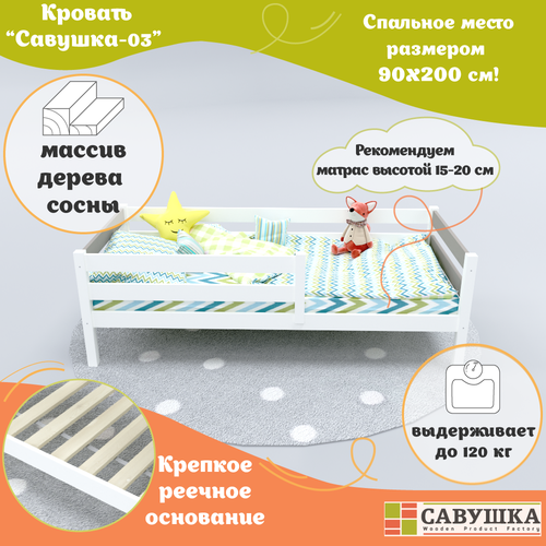 Детская кровать Савушка-03 1-ярусная 90х200 Белый