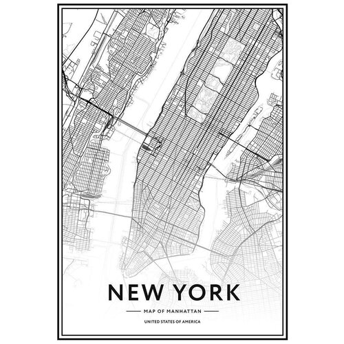 Интерьерный постер на стену в подарок "New York" размера 50х70 см 500*700 мм в черной раме для декора комнаты, офиса или дома