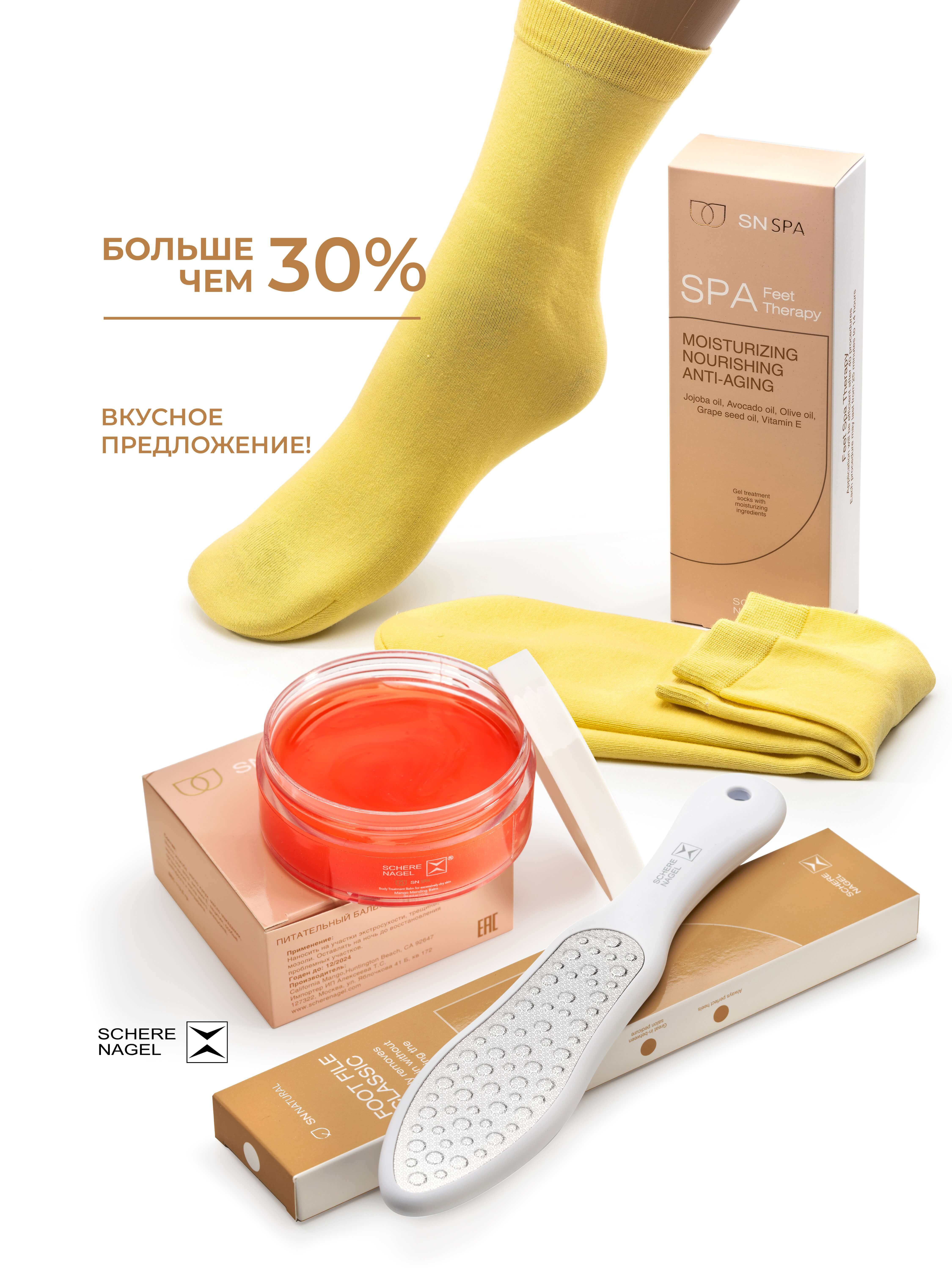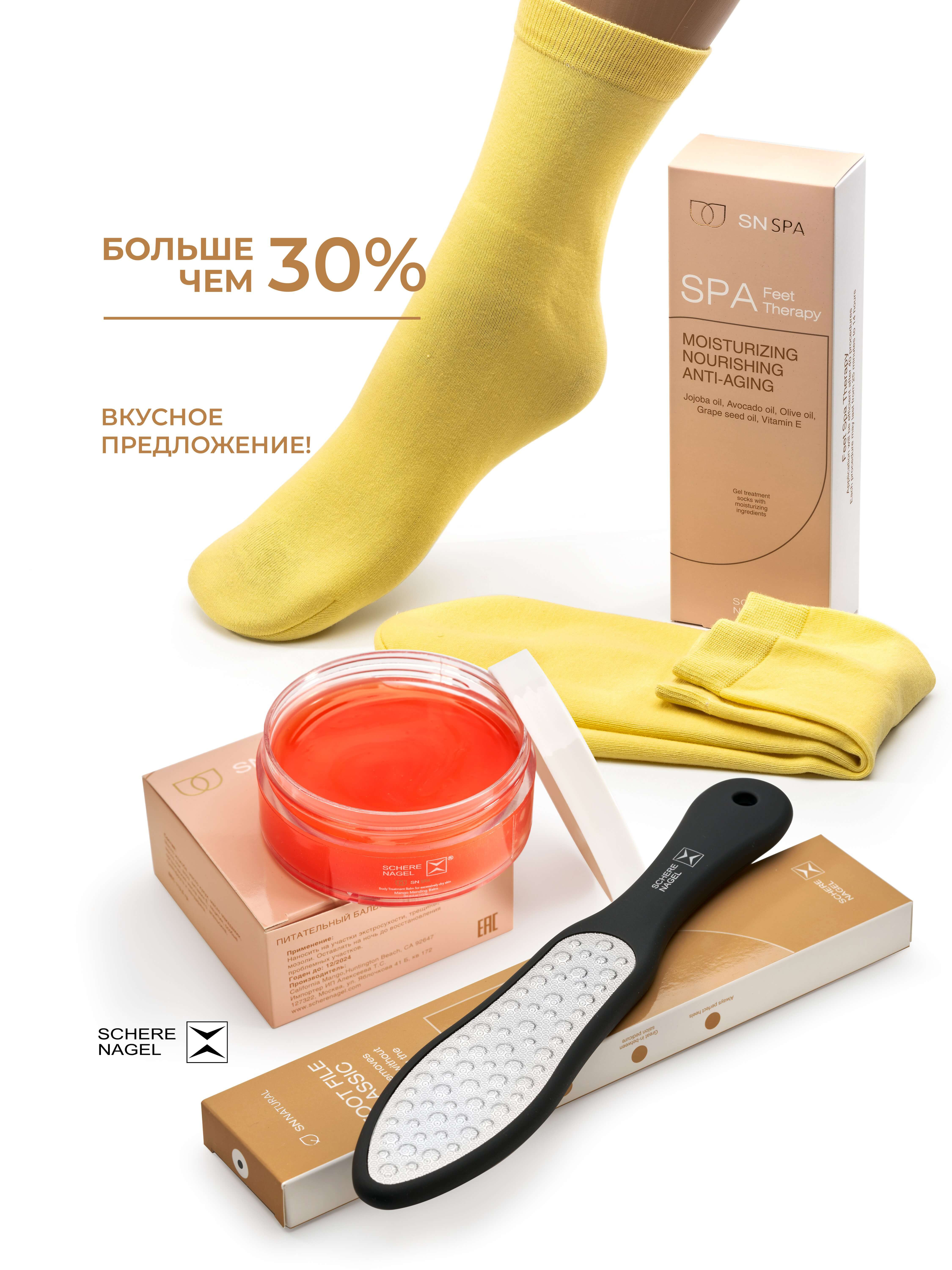 Набор Schere Nagel - бальзам Манго Mending Balm Spa - носочки и педикюрная терка белая