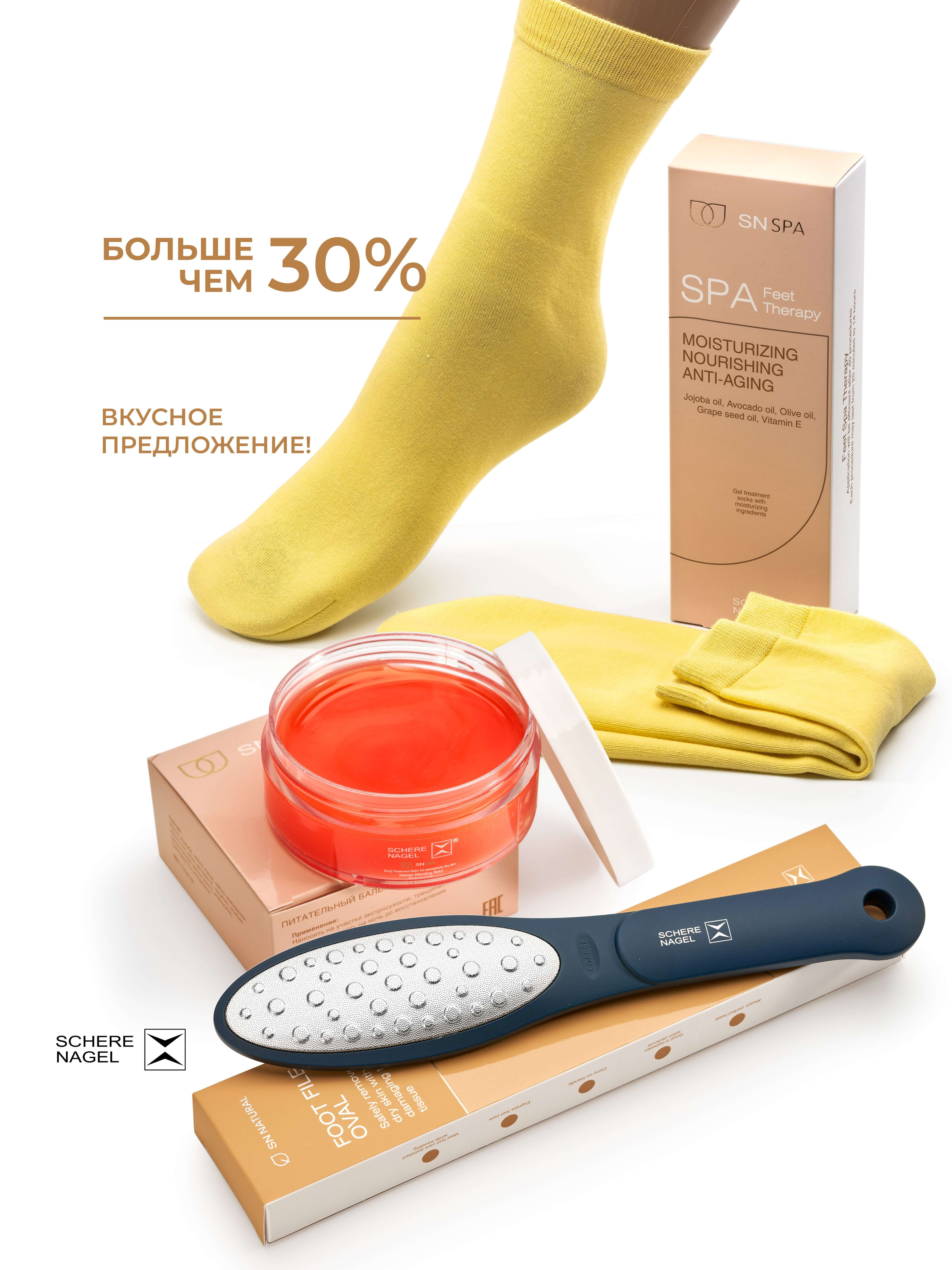 Набор Schere Nagel - бальзам Манго Mending Balm Spa - носочки и педикюрная терка Oval