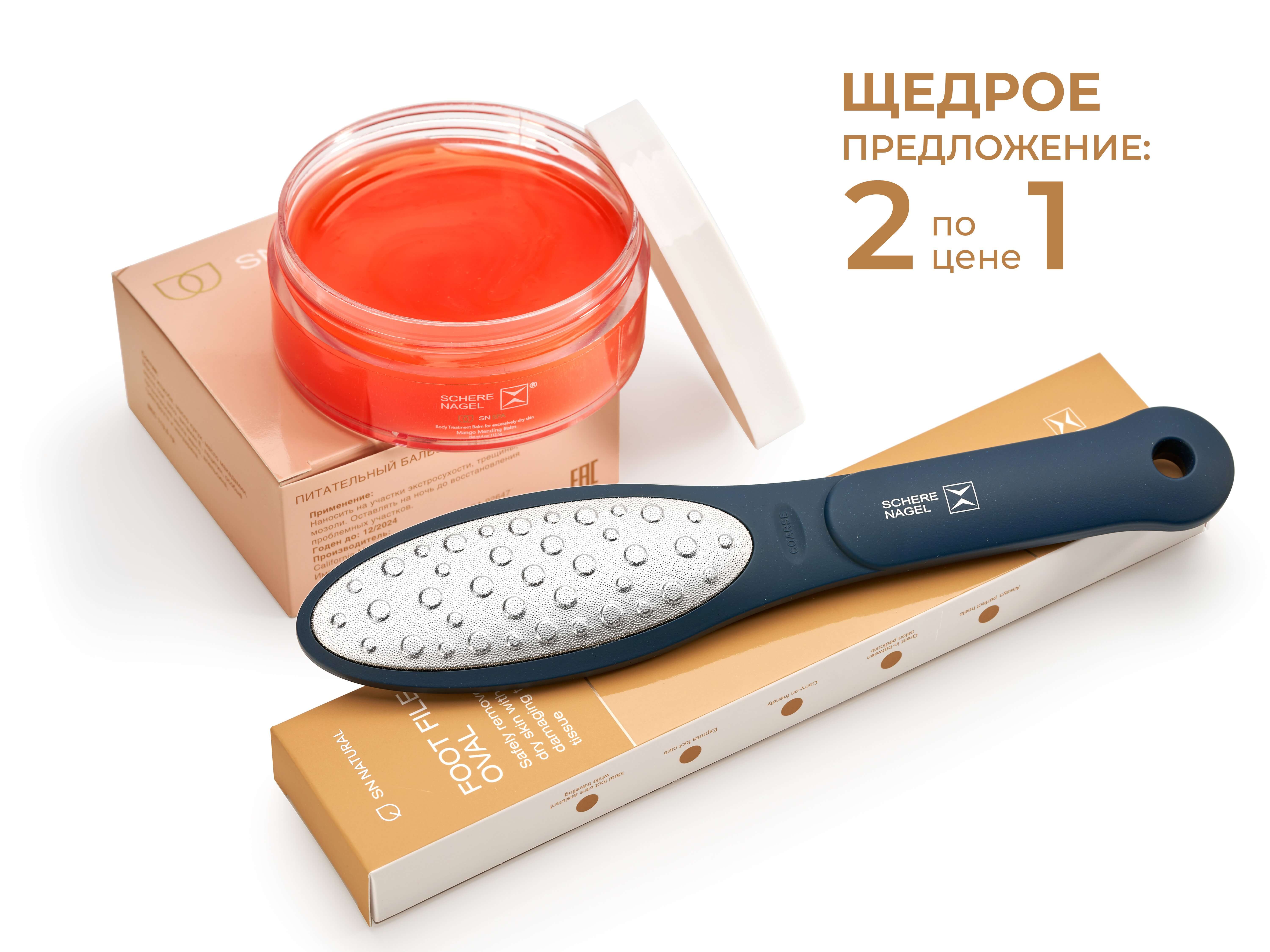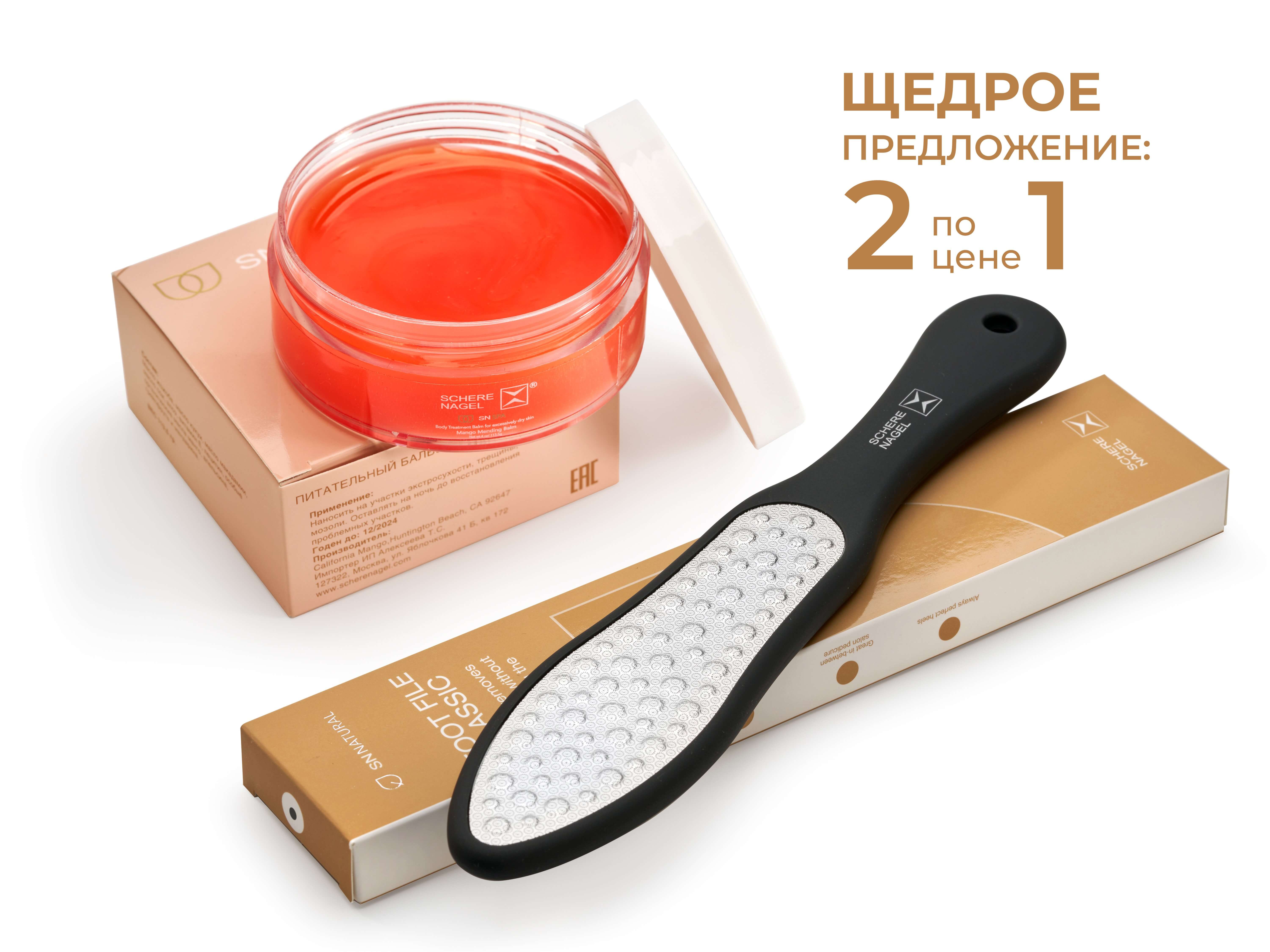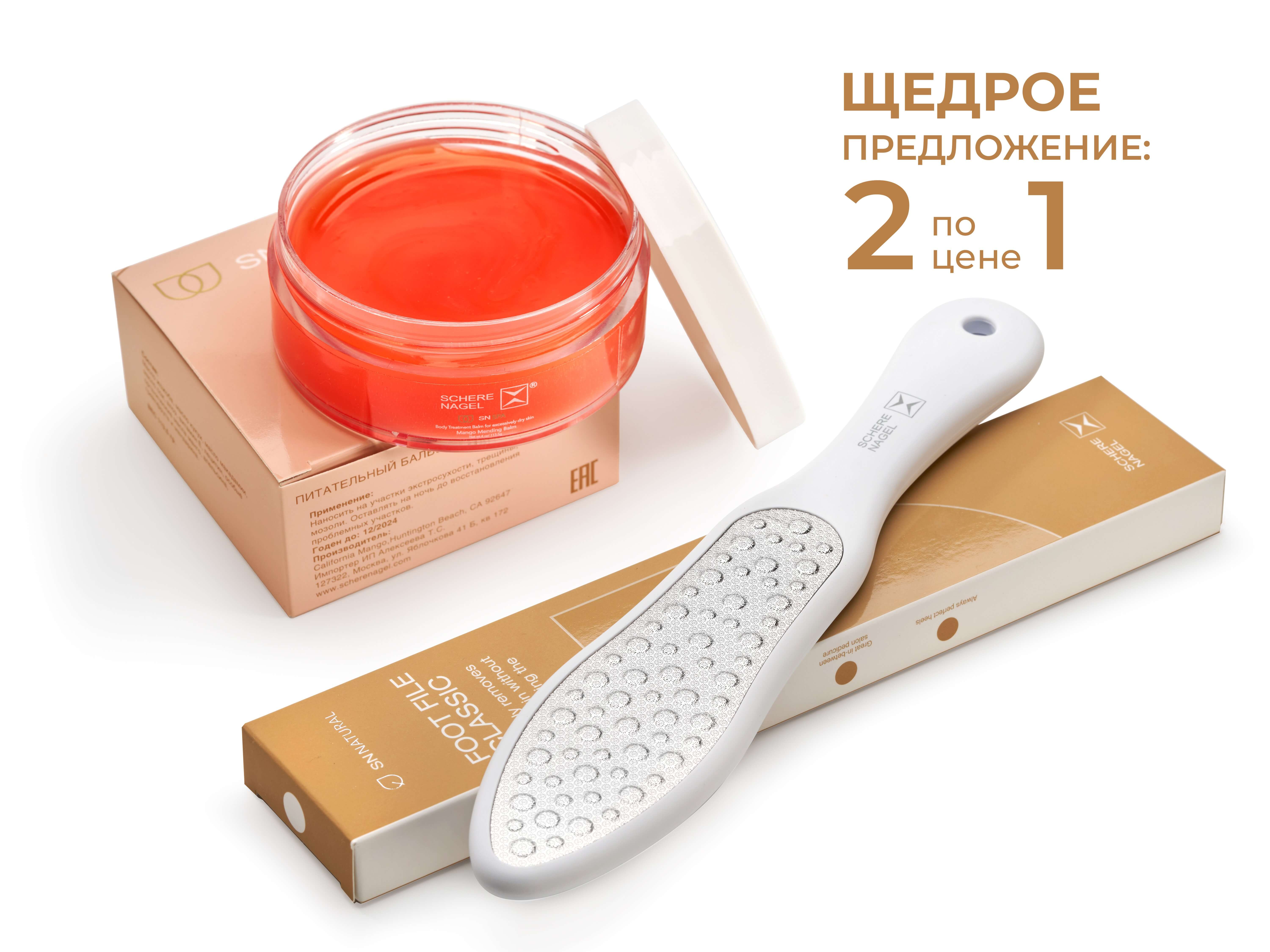 Питательный бальзам Schere Nagel Манго Mending Balm и лазерная педикюрная терка белая Питательный бальзам для тела и педикюрная терка