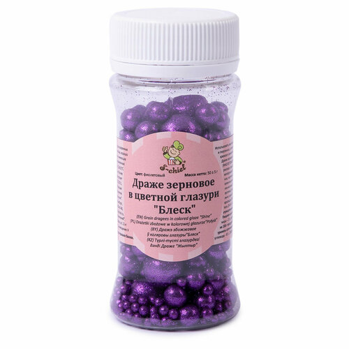 Драже зерновое "S-CHIEF" в цветной кондитерской глазури «блеск» 50 г "фиолетовый" SL707
