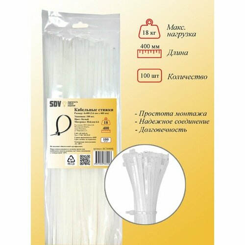 4*400 Мм (100шт) Белые, Пластиковые Стяжки (Нейлон)