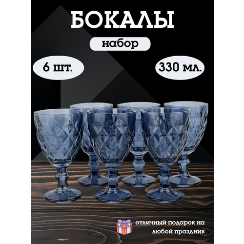 Бокалы стеклянные 330 мл. набор 6 шт. темно-синий