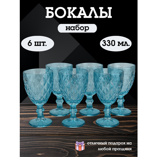 Бокалы стеклянные 330 мл. набор 6 шт. бирюзовый