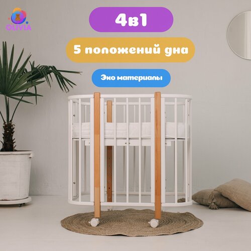 Кроватка-трансформер Merry Happy 4в1 Карамель белая матовая