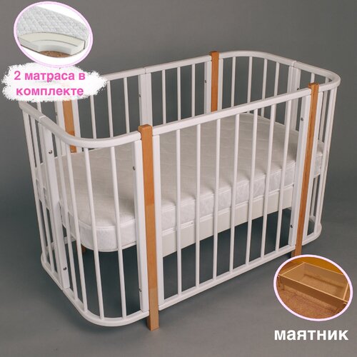Кроватка-трансформер Marry Happy Classic 6 в 1 + комплект матрасов + маятник + полка для трансформации в пеленальный столик
