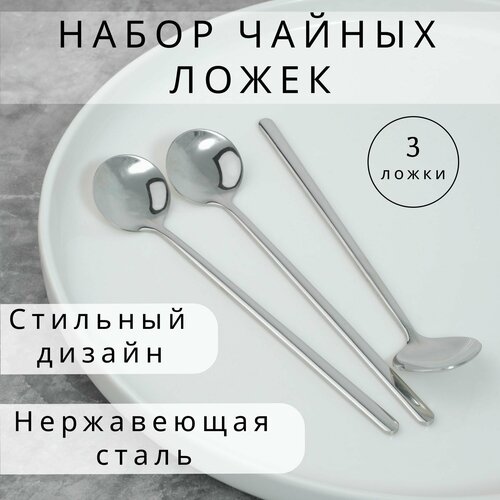 Набор чайных ложек с длинной ручкой 3 шт. Цвет. Ложка кофейная, ложка чайная, ложка десертная. Длина 17см.