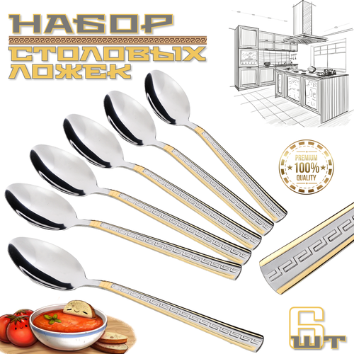 Ложки столовые из нержавеющей стали набор 6 шт. с греческим орнаментом