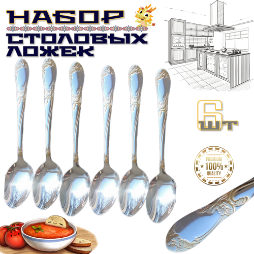 Ложки столовые с цветочным орнаментом из нержавеющей стали 6 штук