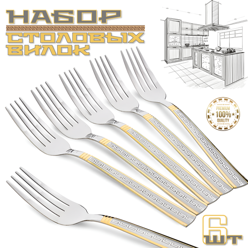 Вилки столовые Набор 6 штук с позолоченным греческим орнаментом, длина 21 см