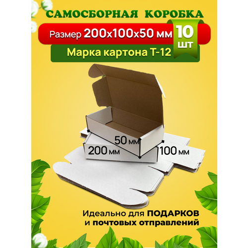 Самосборная коробка для подарков белая-200х100х50 мм. Марка Т12 Е. Комплект 10 штук
