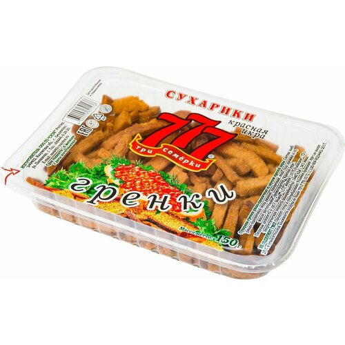 Сухарики-гренки Три Семёрки ржано-пшеничные со вкусом красной икры, 150г, 6 шт.