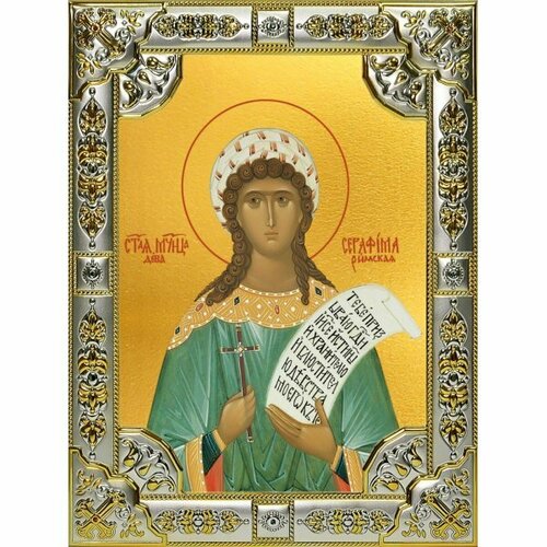 Икона Серафима Римская 18х24 см в серебряном окладе, арт вк-995