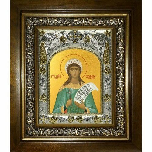 Икона Серафима дева мученица, 14x18 см, в деревянном киоте 20х24 см, арт вк-456