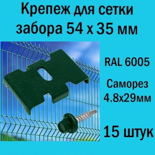 Крепеж для заборной сетки Паук с саморезом RAL 6005 (15 шт.). Крепеж для забора.