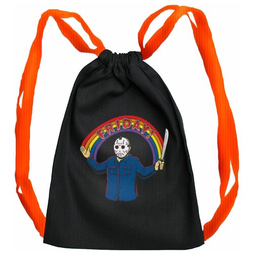Летний легкий рюкзак (для обуви) LETO "Friday", черный с оранжевыми лямками