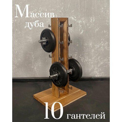 Подставка для гантелей из массива дуба и нержавеющей стали. Подставка дубовая под 10 гантелей. Подставка №9