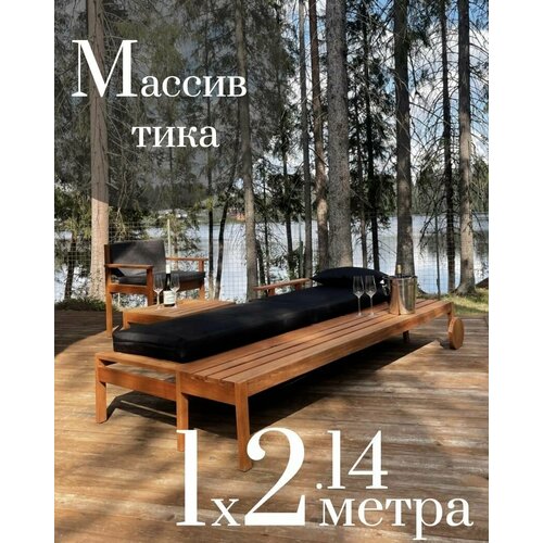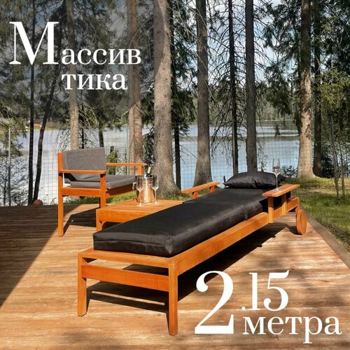 Шезлонг лежак двойной для загара из массива африканского тика. Шезлонг на колесах из африканского тика ироко. Кровать №3