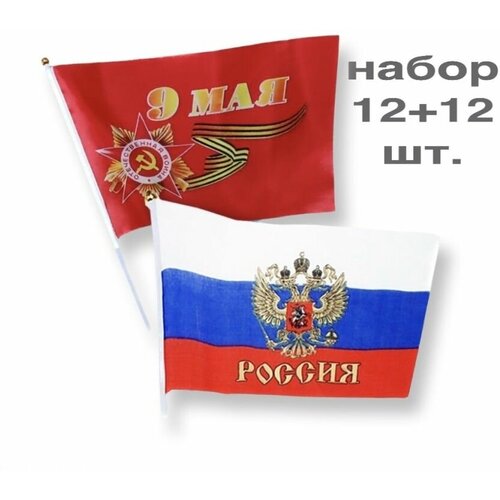 Набор флагов 9 Мая+Россия с гербом 12шт
