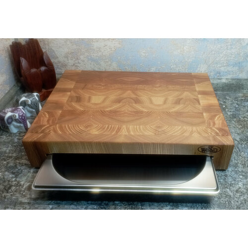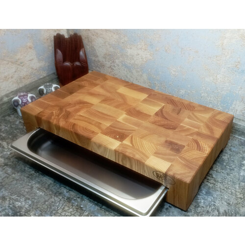 Кухонная разделочная торцевая доска с гастроемкостью 400х300х70мм. из массива ясеня. SFWooD.
