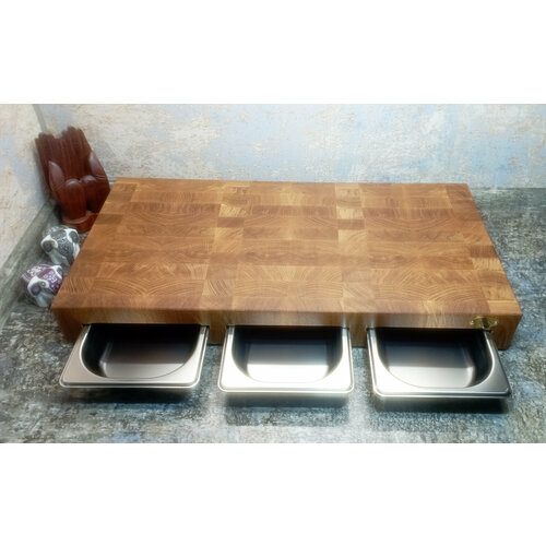 Разделочная торцевая доска с гастроемкостями 590x300x70 мм. SFWood.