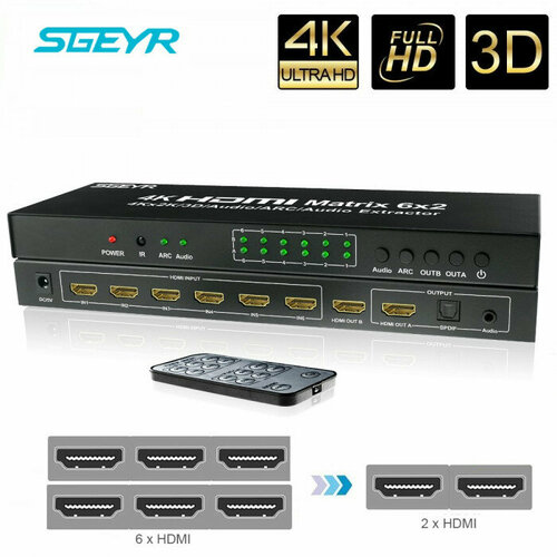 Матричный переключатель HDMI matrix switch 6x2 + ARC SPDIF HDMI шесть входов и два выхода с аудио выходом