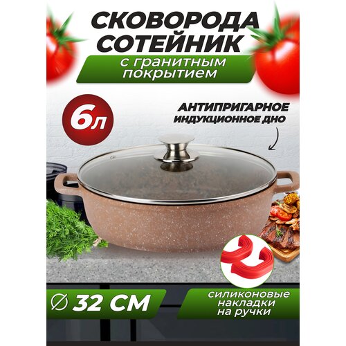 Сотейник, сковорода с антипригарным покрытием, кастрюля гранитная на 6 л, жаровня с крышкой диаметром 32 см