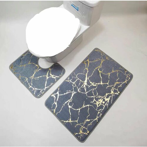 Коврики для ванной и туалета 50*80---50*40см "Мрамор" на резиновый основе , серый
