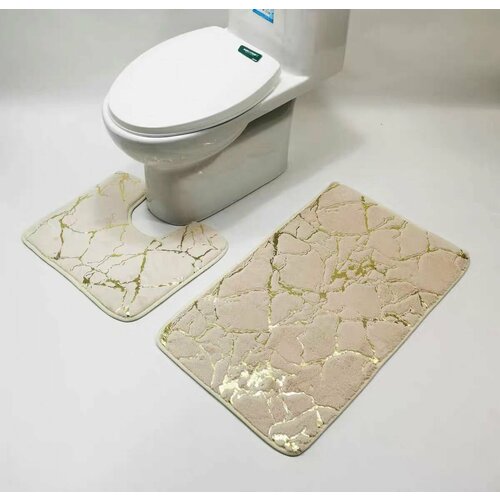 Коврики для ванной и туалета 50*80---50*40см "Мрамор" на резиновый основе , бежевый