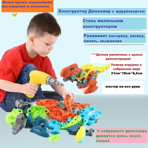 Конструктор динозавр пластиковый с отверткой, 33 элемента