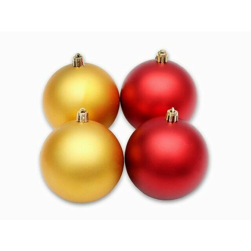 Набор елочных шаров Shantou 8 см, 4 шт, Бархат красный, золото, матовые (НУ-6984)