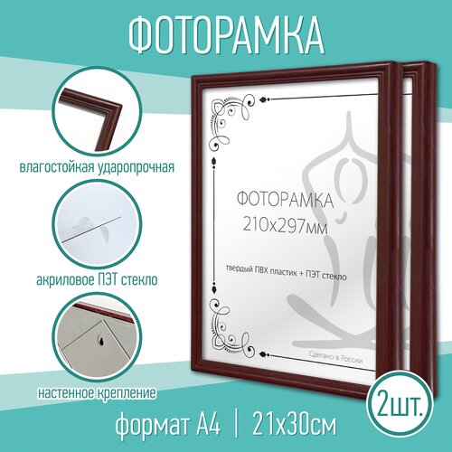 Рамки (фоторамки) пластиковые влагостойкие настенные темно - формат А4 размер фото 21х30 см с ПЭТ стеклом, небьющиеся 2 шт.