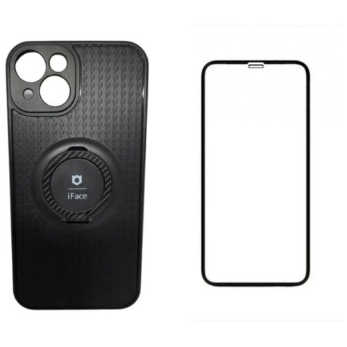 Комплект для Apple IPhone 13 / на Айфон 13 : чехол силиконовый с кольцом + защитное стекло с черной рамкой на весь экран / дисплей